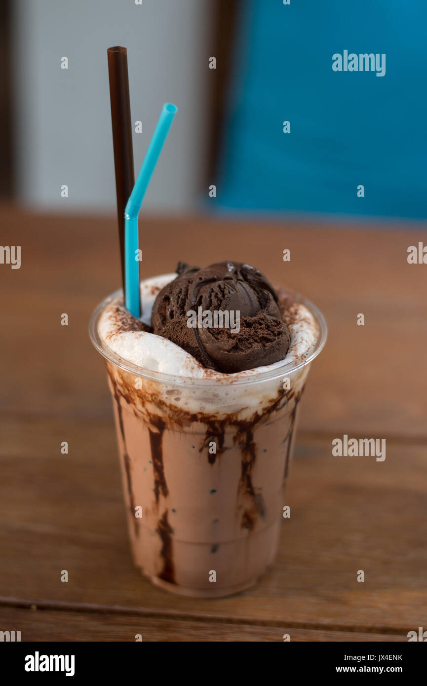 Very Delicious Ice Chocolate Drink Recipe With Milk Foam And Dark Chocolate Ice Cream Scoop On Top Stock Photo Alamy